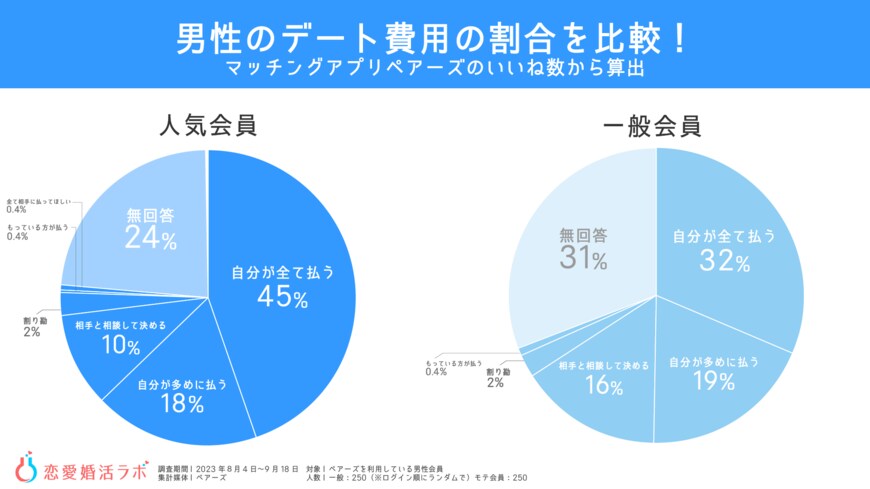 ネット上で論争が巻き起こる「デート費用」については、自分が全て払うという人が人気。