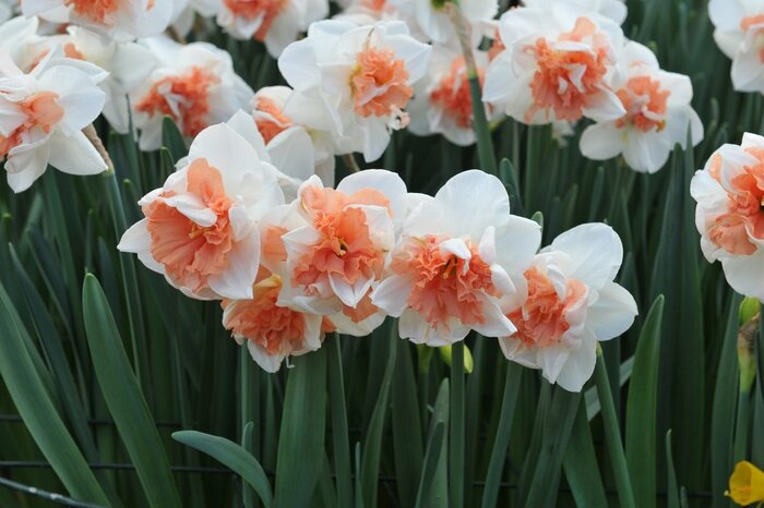 スノーフレークの花色は白のみになりますが、スイセンは白や黄、ピンク系やオレンジ系など多彩な花色があり、また一重咲きや八重咲きなど印象が違う品種がたくさん揃っています。