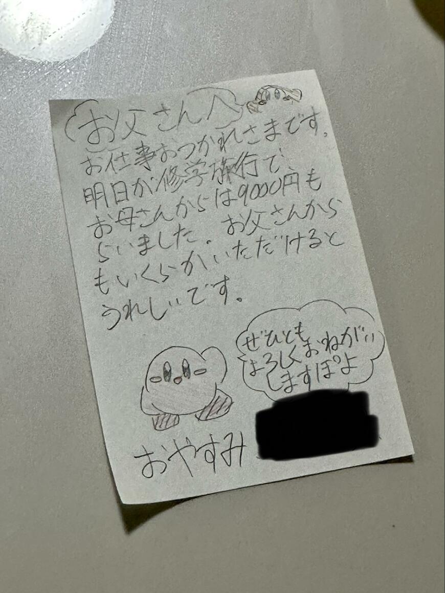 「お父さんへ、お仕事おつかれさまです…」かわいい怪文書が話題
