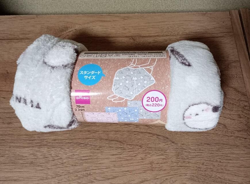 こちらがダイソーで販売されている「シマエナガデザインのひざ掛け」です。100円ではなく、220円(税込)の商品です。