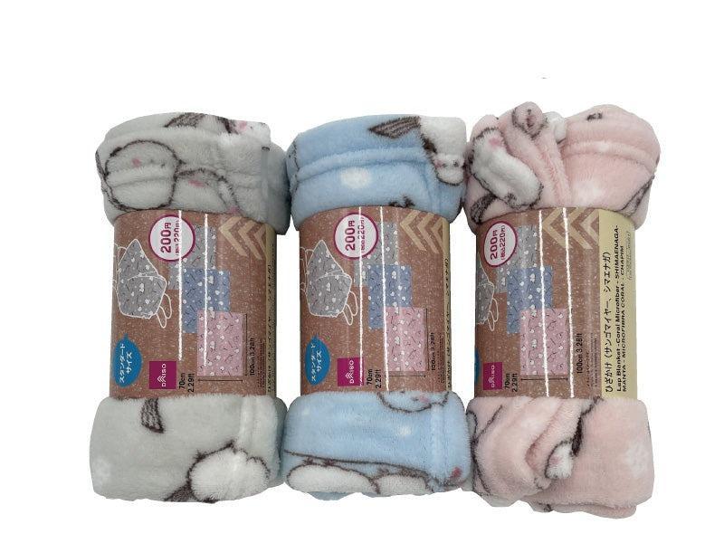1. ブルーやピンクがかわいいです! ダイソーの「シマエナガデザインのひざ掛け」