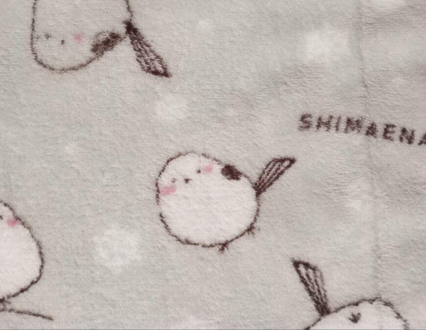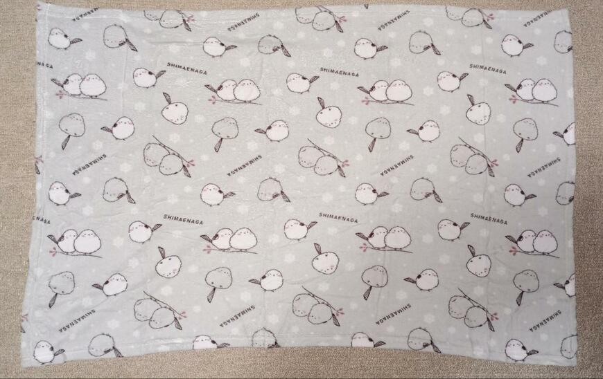 2. ダイソーの「シマエナガデザインのひざ掛け」を広げてみました! 80羽近くのシマエナガが出現
