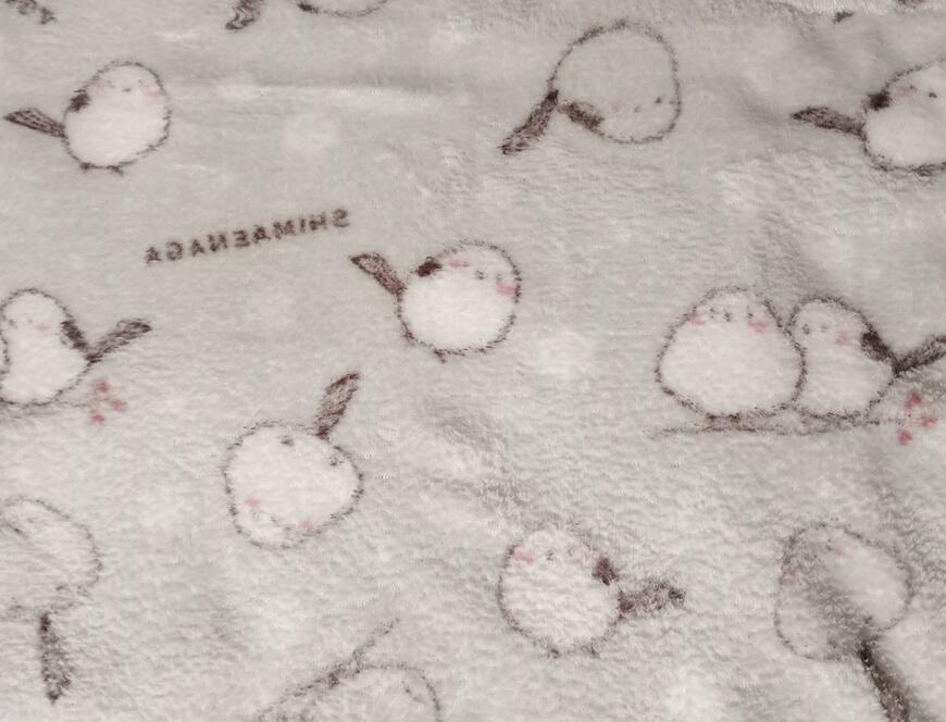 ダイソーの「シマエナガデザインのひざ掛け」を広げてみました。70cm×100cmの空間に80羽以上のシマエナガが出現しました。