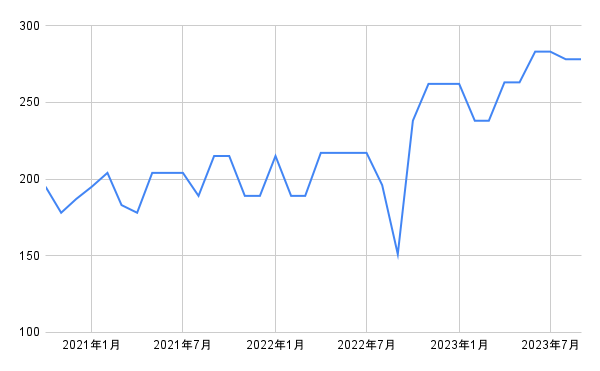 ※前年からの価格の変動幅(2023年9月時点の小売価格)