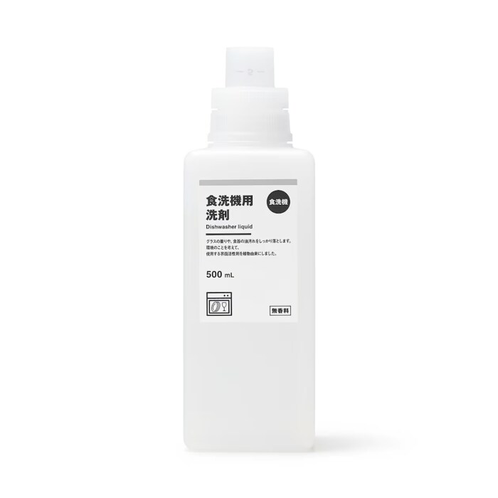 すっきりとしたシンプルなデザインのボトルに入っている食洗機用洗剤です。