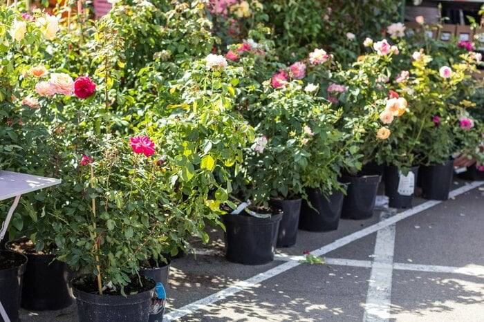 店頭には大苗がズラリと並びだします。人気の品種はすぐに売り切れてしまうので、お目当てのバラを見つけたら早めに購入しましょう。