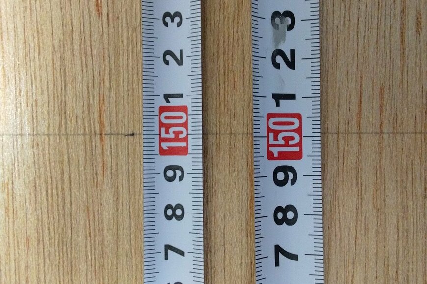 どちらも同じ150mmを測っているはずが、目盛りが1mmほどずれています。長さを測るためのコンベックスで長さに差異がでるとは、一体どういうことなのでしょうか。