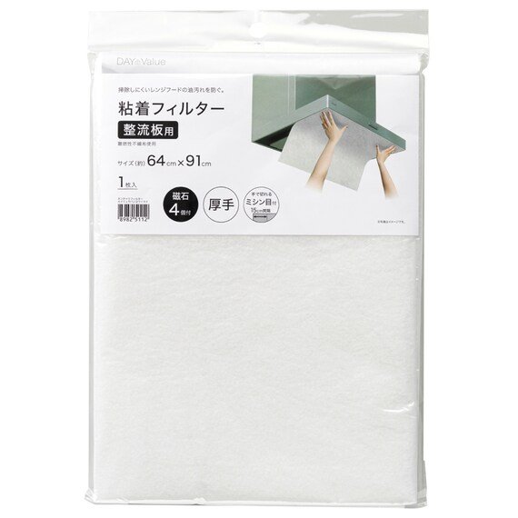 整流板1枚の付いたタイプの換気扇で使用できるレンジフード用粘着フィルターです。レンジフィルターを覆って、調理時の油や臭いをキャッチします。ミシン目がついているので、手で簡単にカットできますよ。
