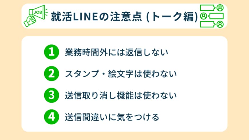 LINEではかわいいスタンプが魅力的だったりしますよね。友達や家族間のやりとりでスタンプを使ったやりとりを楽しんでいる方も多いかと思いますが、採用担当者とのLINEは就職活動の一環です。