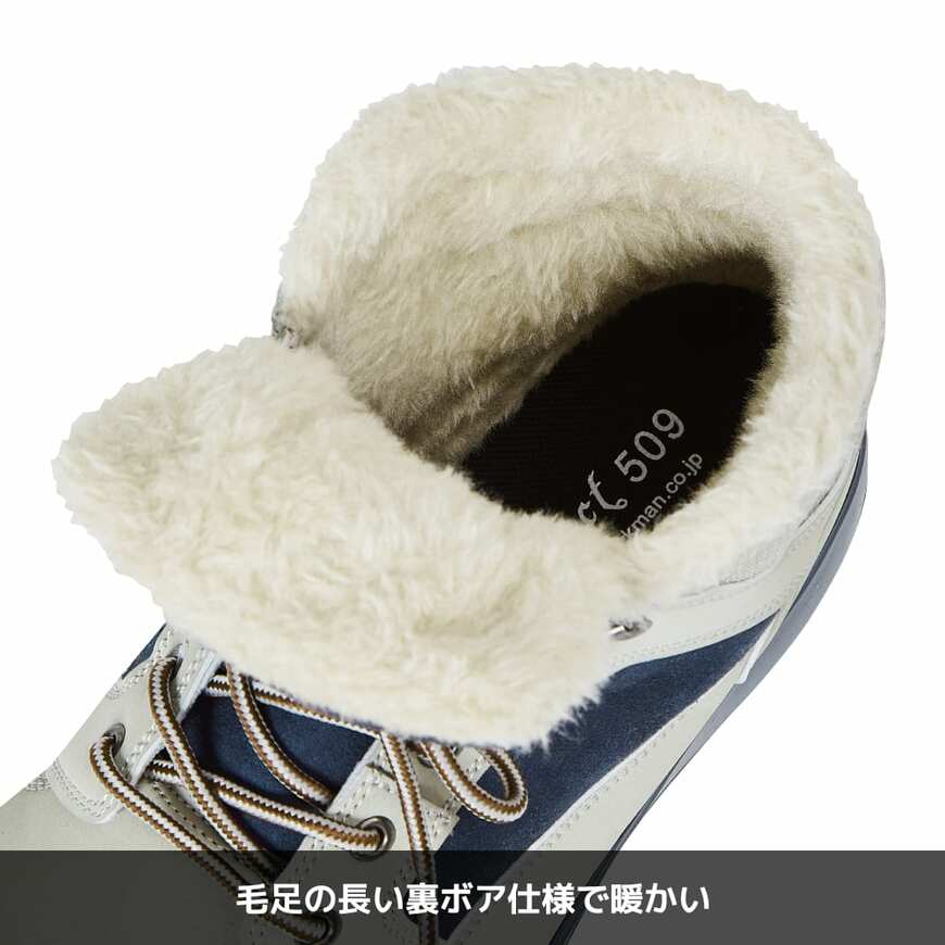 裏ボア仕様で暖かいアメカジスタイルの防寒セーフティーシューズ。靴底は寒い日にも硬くなりづらいこだわりの素材で作られていて、歩きやすさも抜群です。
