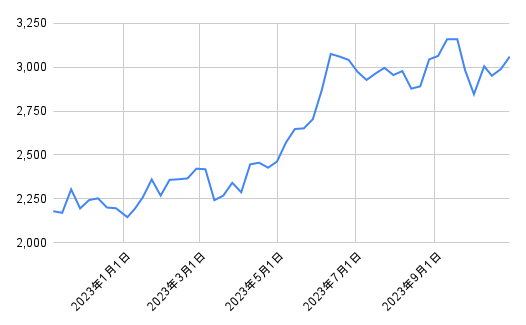 1年後の株価の終値:3060円