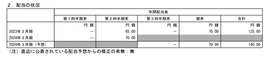 として、年間配当は前期比+5円の1株あたり140円を予想している。