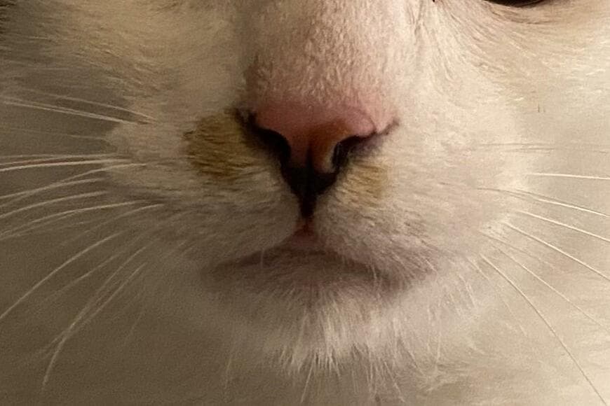 加えて視線を惹くのは、口元のモッフリとしたひげ袋。鼻の両脇の被毛は、少し淡い茶色になっているところもチャーミングなポイントです……!