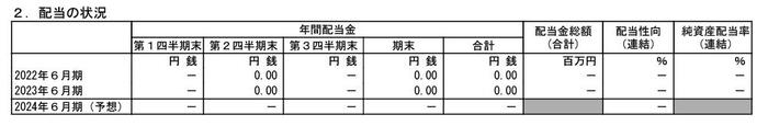 最後にメルカリの配当推移を確認しましょう。メルカリは創業以来、配当の実施がなされていません。