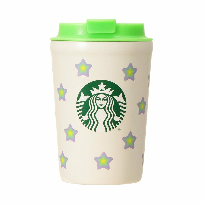 今年らしいビビッドなネオンカラーが印象的なステンレスタンブラーです。全面に描かれたスターのアートワークが特徴的ですね。真空二重構造ステンレスなので、保温・保冷性に優れています。