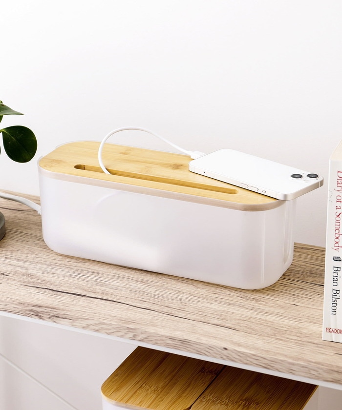 ケーブルタップや充電ケーブルなどの目隠しに役立つケーブル収納。ごちゃごちゃとしやすい配線周りがすっきりとし、片付いた印象の部屋にしてくれます。中身がほんのり透ける半透明のデザインがおしゃれです。