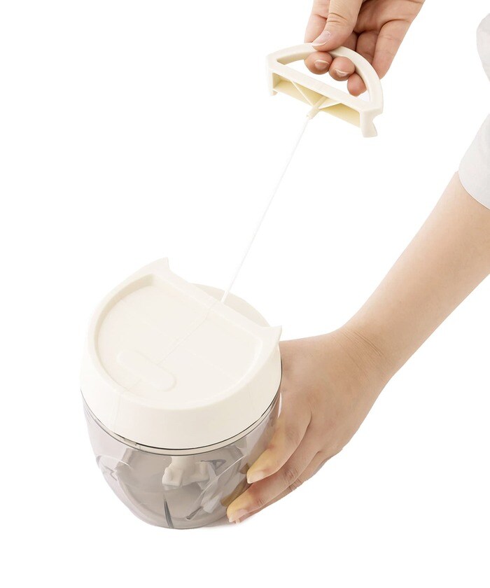 時短調理に便利なハンディーチョッパー。大きめにカットした食材をボウルに入れてフタをし、ハンドルを引っ張るだけで簡単にみじん切りが可能です。
