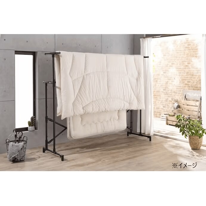 全体耐荷重40kgと安心の強度設計で、重い布団も安心して干せますね。安定性がありながら、アルミ製で軽く、コンパクトにたためる点も嬉しいポイント。ベランダはもちろん、室内物干しとしても活躍します。