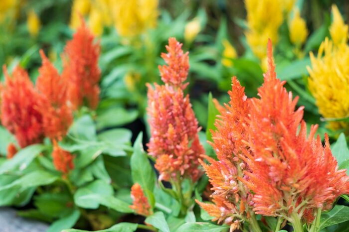 羽毛ケイトウは「フサゲイトウ」とも呼ばれ、柔らかい手触りで炎のような円錐形。カラーバリエーションも豊富で、塔のように伸びる花穂がスタイリッシュです。