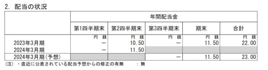 として、年間配当は前期比+1円の1株あたり23円を予想している。