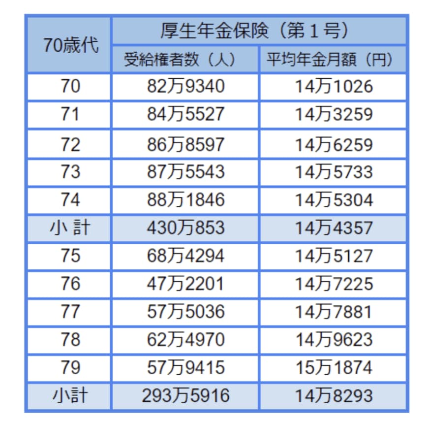 2. 70歳~79歳が受給する「国民年金・厚生年金」はいくら?