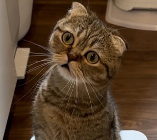 首を傾げる姿にキュン!踏み台を制する猫ちゃんが話題