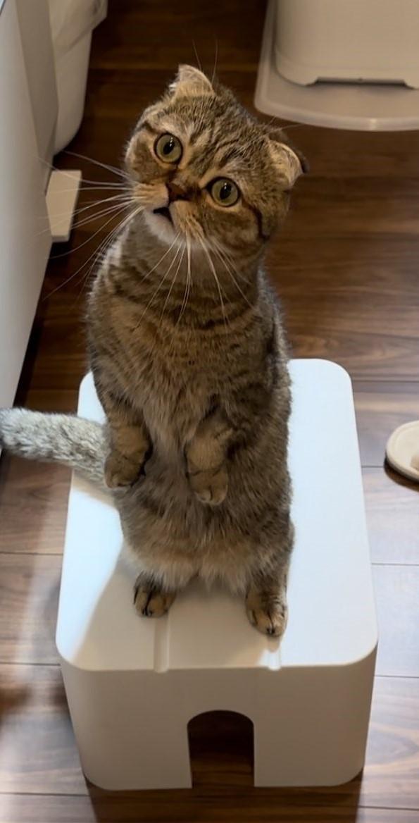 棚開けるために踏み台出したら、先に乗られました😅 pic.twitter.com/JJDJsjaKAb