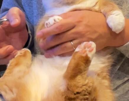 爪切り、なんとか我慢してる顔#猫 #猫のいる生活 #猫好き #癒し pic.twitter.com/GFr1GrXgtd