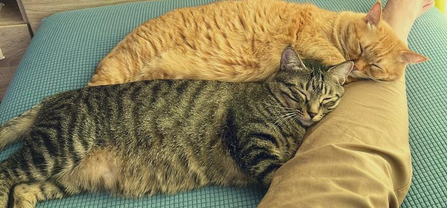 すずくんとつむぎくんの、心をくすぐる「出勤阻止」はXで大勢の心を癒したようです。