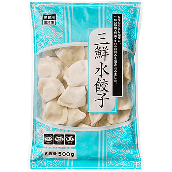 「三鮮水餃子」は、豚肉と野菜、エビを混ぜ合わせ、もちもちの皮で包んだ業務スーパーで人気の商品!おかずのボリュームが足りないとき、スープに冷凍のまま入れることができるのでとても便利です。