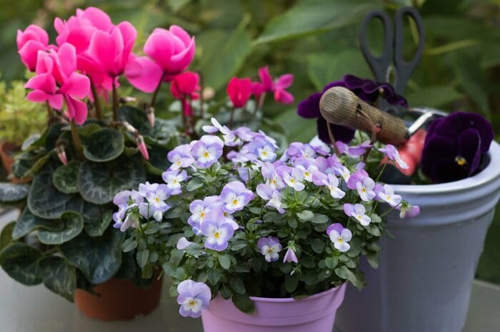 秋からの花壇で大活躍するパンジーとビオラ。花径が大きいパンジーと合わせると華やかな雰囲気に、小ぶりながらも花数が多いビオラと植えると大人カワイイ雰囲気の寄せ植えをつくることができます。