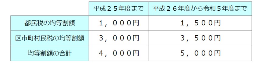 ちなみに、東日本大震災の復興財源などを確保するため、2014年度から2023年度までの10年間、都道府県民税・市町村民税ともに500円ずつ引き上げられています。