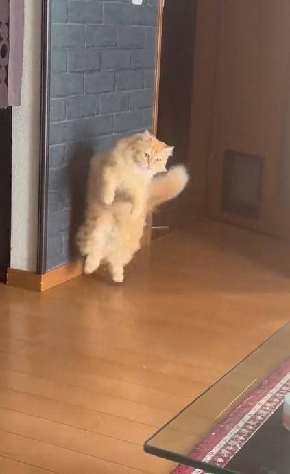 俊敏な動きと「人間のような足さばき」で笑いを誘う猫ちゃんの様子がX(旧Twitter)で注目を集めています。