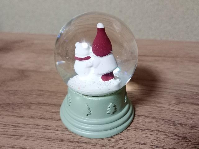 こちらがダイソーで販売されている110円(税込)のスノーボールです。高級感ある土台の上に、ガラス製のボールがのっています。