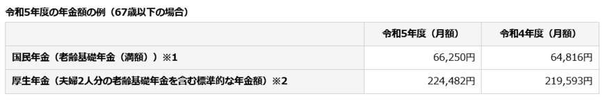 ご参考までに、2023年度の年金額例を見ておきましょう。