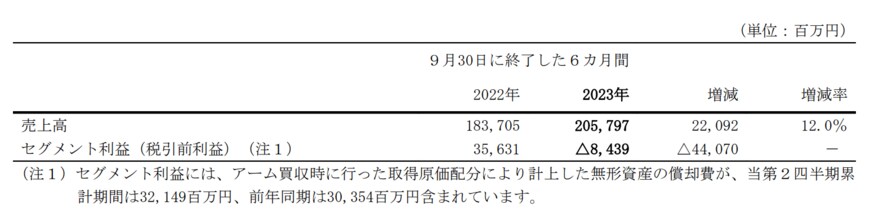 増収となった一方で、セグメント利益は、前年同期比▲440億7000万円の84億3900万円の赤字となった。