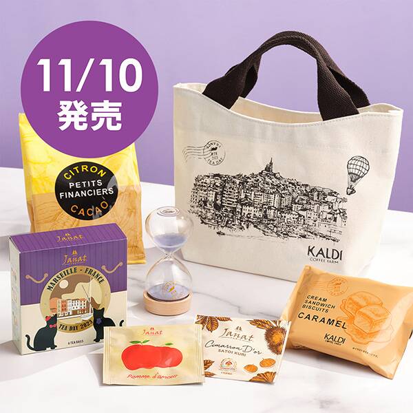 カルディでは、お得でかわいいセット商品を企画・販売しています。今回ご紹介する「紅茶バッグ」もそのひとつ。毎年登場するたびに人気のセットには、秋を感じる味わいの紅茶と焼き菓子、ティータイムを贅沢に彩る砂時計が入っています。