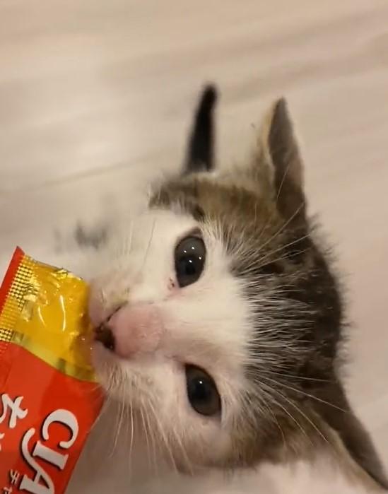 赤ちゃんせっちゃんの頃からちゅーるはガブガブ🙀 pic.twitter.com/7azhF4qIYu