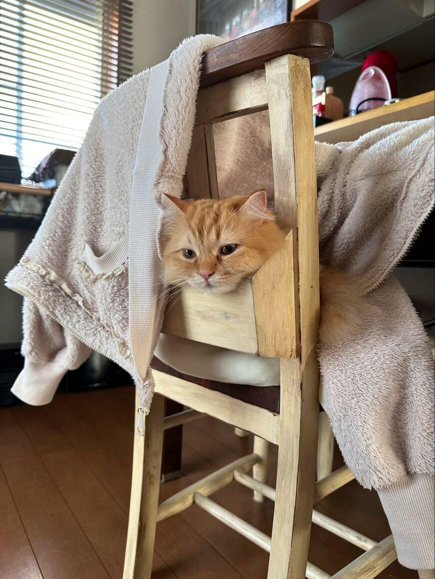 出勤前に上着を取るママさんを驚かせた「猫ちゃんの姿」がX(旧Twitter)で注目を集めています。