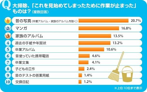 出所:「大掃除、『これを見始めてしまったために作業が止まった』ものは?」(リクルート住まいカンパニー)
