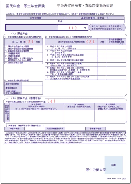 年金の請求を行った方には、「年金証書・年金決定通知書」が送付されます。