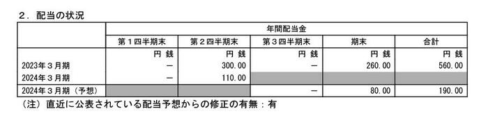 商船三井の株式を1年前に買い、持ち続けたとすると、「2023年3月期の期末配当」と「2024年3月期の中間配当」の計2回を受け取ることができます。