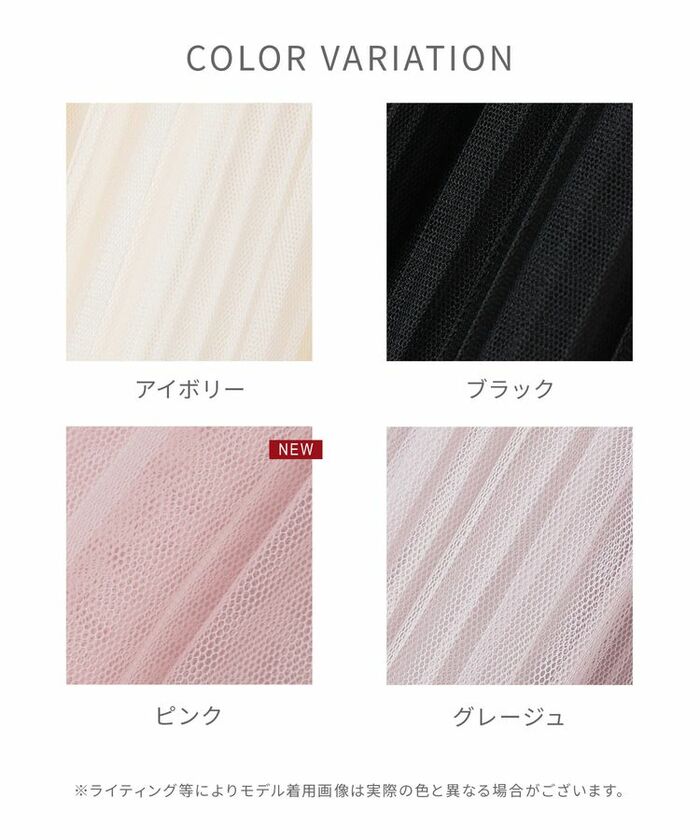 2. 「チュールプリーツスカート」には履きやすい工夫が満載! ウエストゴムで裏地付きの仕様です