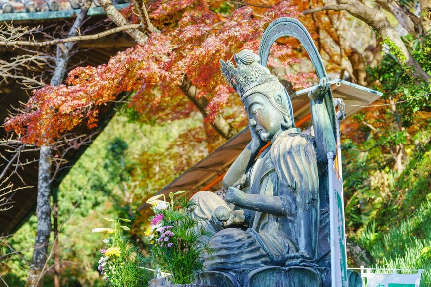 秋は山の落葉樹が一気に紅葉し、境内を華やかに彩ります。山の麓から境内まではケーブルカーを利用できるので、足腰が不安な方も訪れやすいですよ。