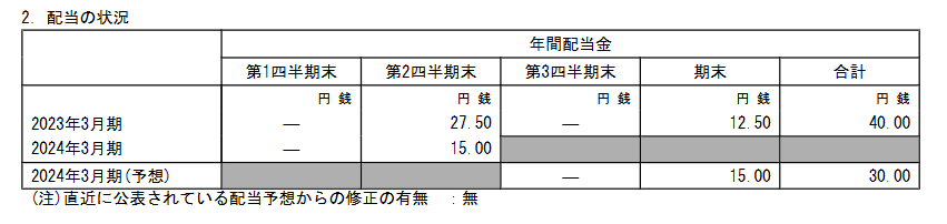 帝人の株式を1年前に買い、持ち続けたとすると、「2023年3月期の期末配当と2024年3月期中間配当」の計2回を受け取ることができます。
