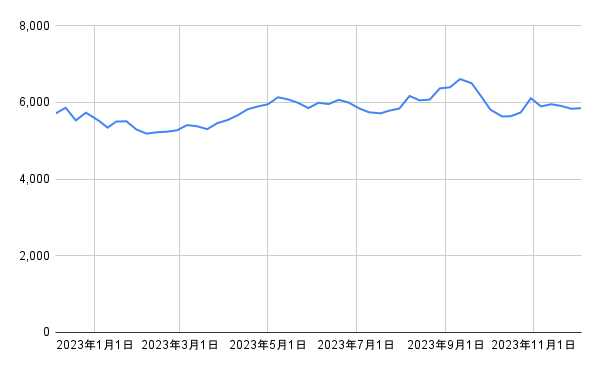 - 1年後の株価の終値: 5847円