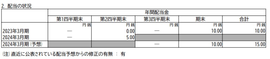 - 2023年3月期・期末配当:10円