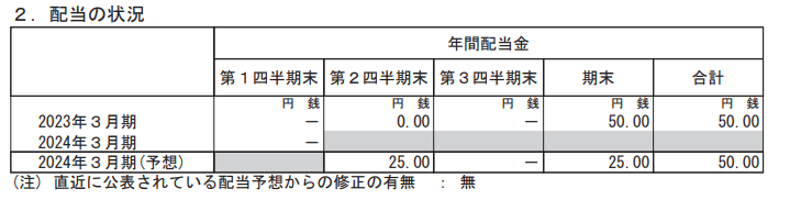 - 2023年3月期・期末配当:50円