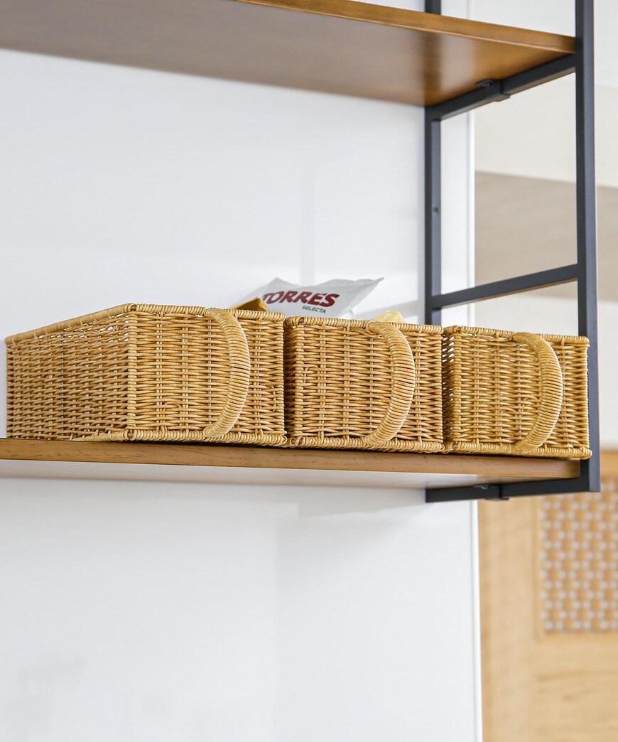 ナチュラルなラタン調のデザインが高みえポイントのキッチン収納グッズです。洗浄可能の素材を使用しているので、水洗いできる優れもの。キッチンだけでなく衣類の収納にも便利です。