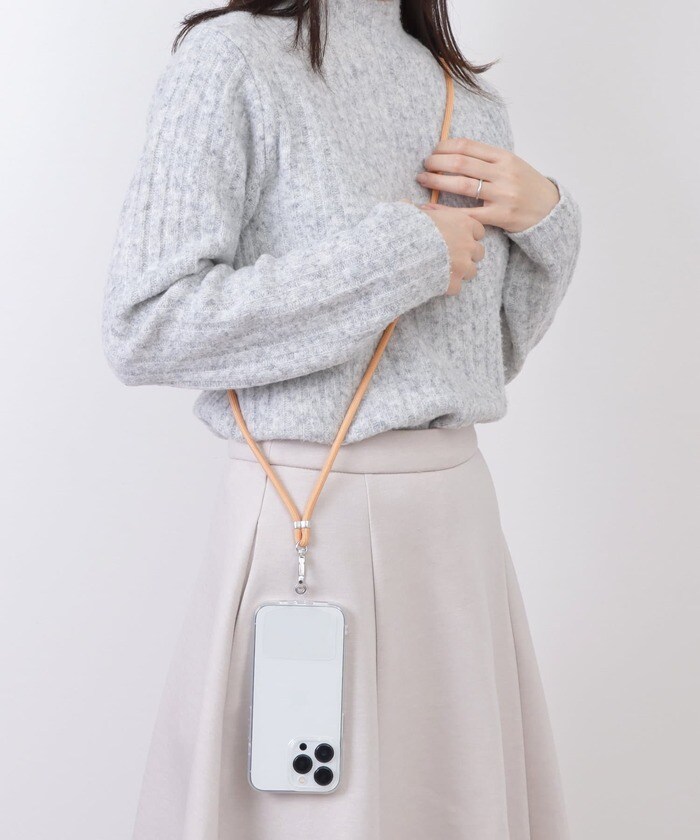 ストラップ部分のカラーは5色でカラーバリエーションが豊富。どれもくすみカラーで服にも合わせやすい色味です。カード部分を手持ちのスマートフォンカバーの内側に挟み、充電ケーブル用の穴に通してストラップの金具を付けるだけと簡単に使用可能!ケーブル用の穴の幅が1.3cm以上のケースであれば使用できます。紐の長さを調節できるのもポイント。体型や好みに応じてベストな長さに合わせられます。
